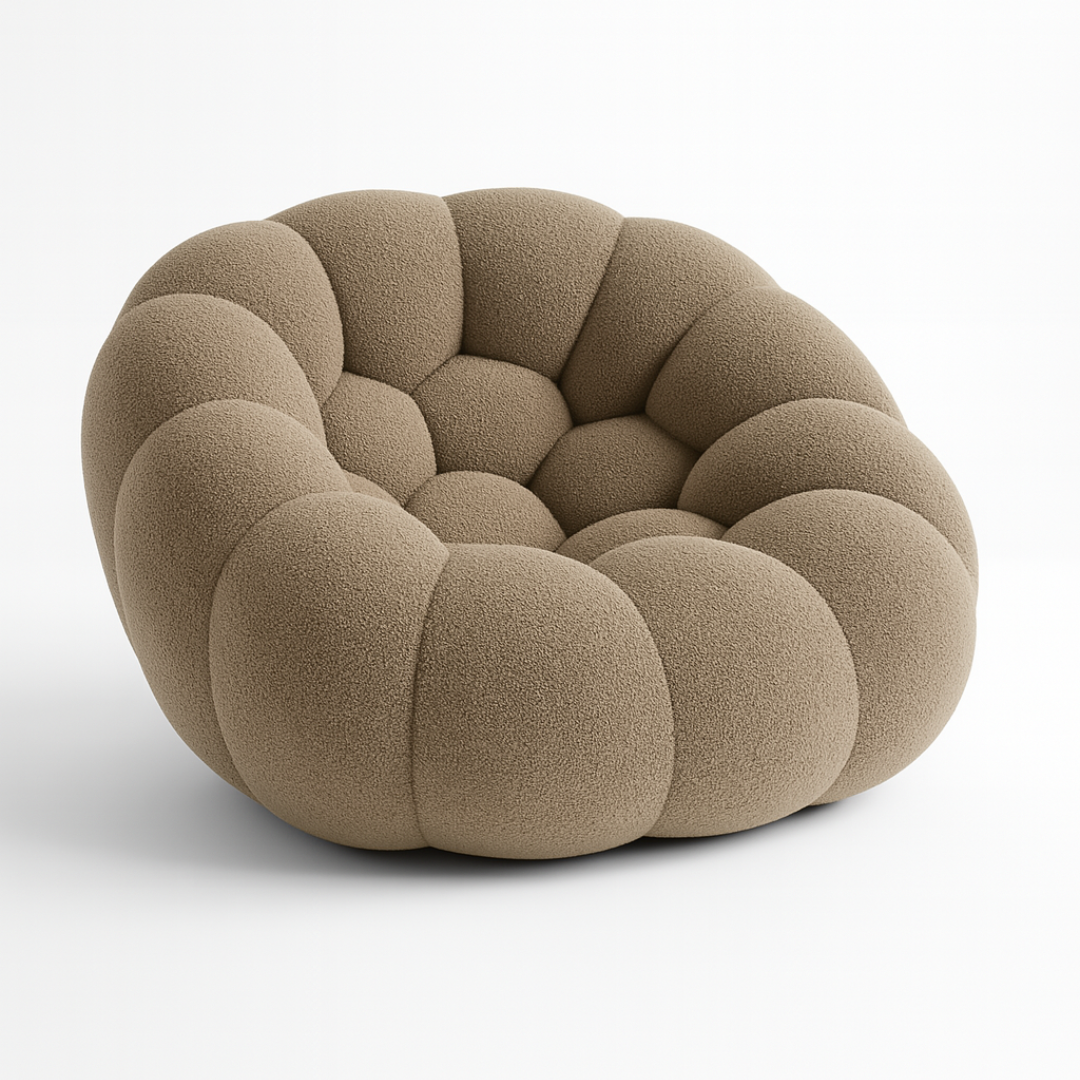 Sa teinte sable chaude et ses formes généreuses créent une ambiance enveloppante, propice au repos et à la douceur. Ce fauteuil est pensé pour les intérieurs épurés où chaque détail compte.