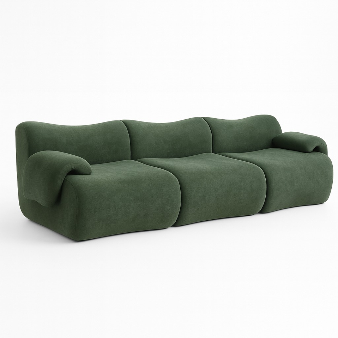 Son assise généreuse, ses lignes souples et son revêtement velouté en font une pièce forte, pensée pour ceux qui veulent ramener un peu de nature chez eux, sans jamais compromettre le style.